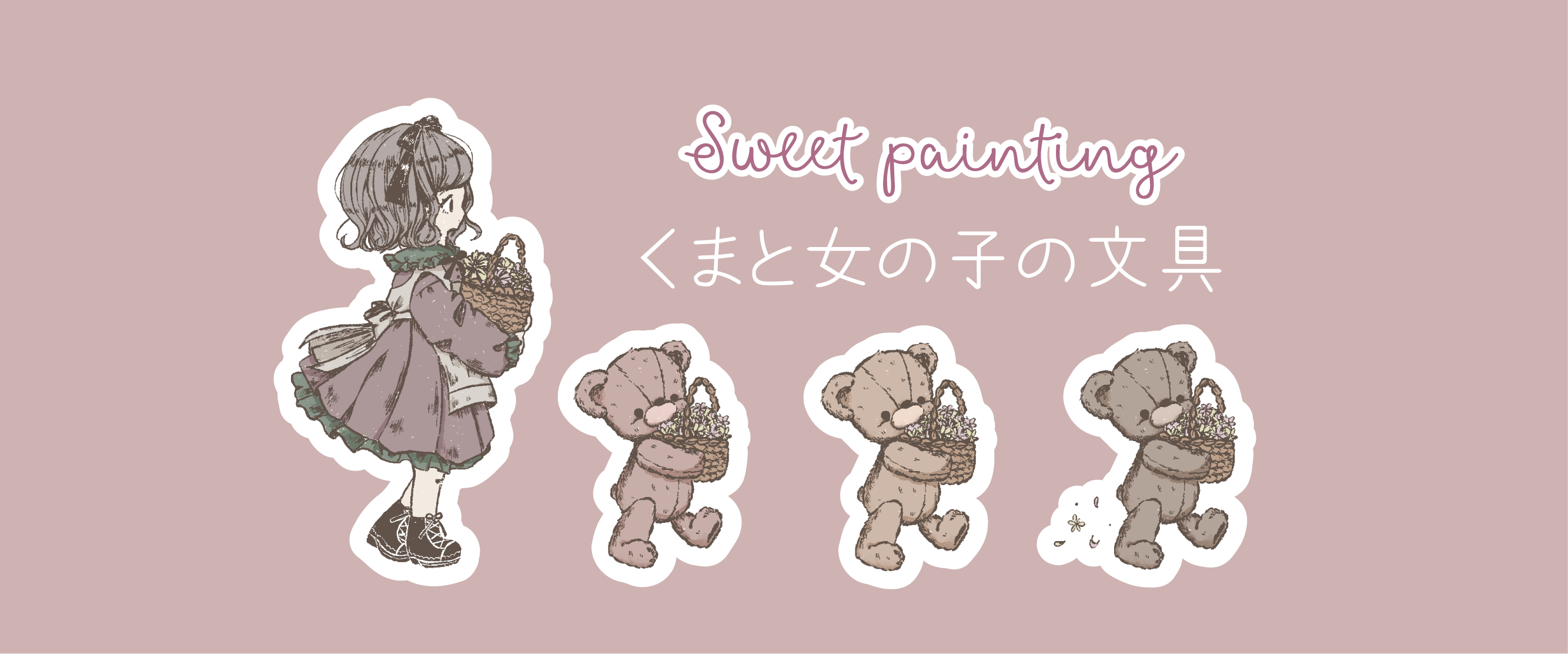 ステッカーセット - テディベアNo.1 【Sweet painting】