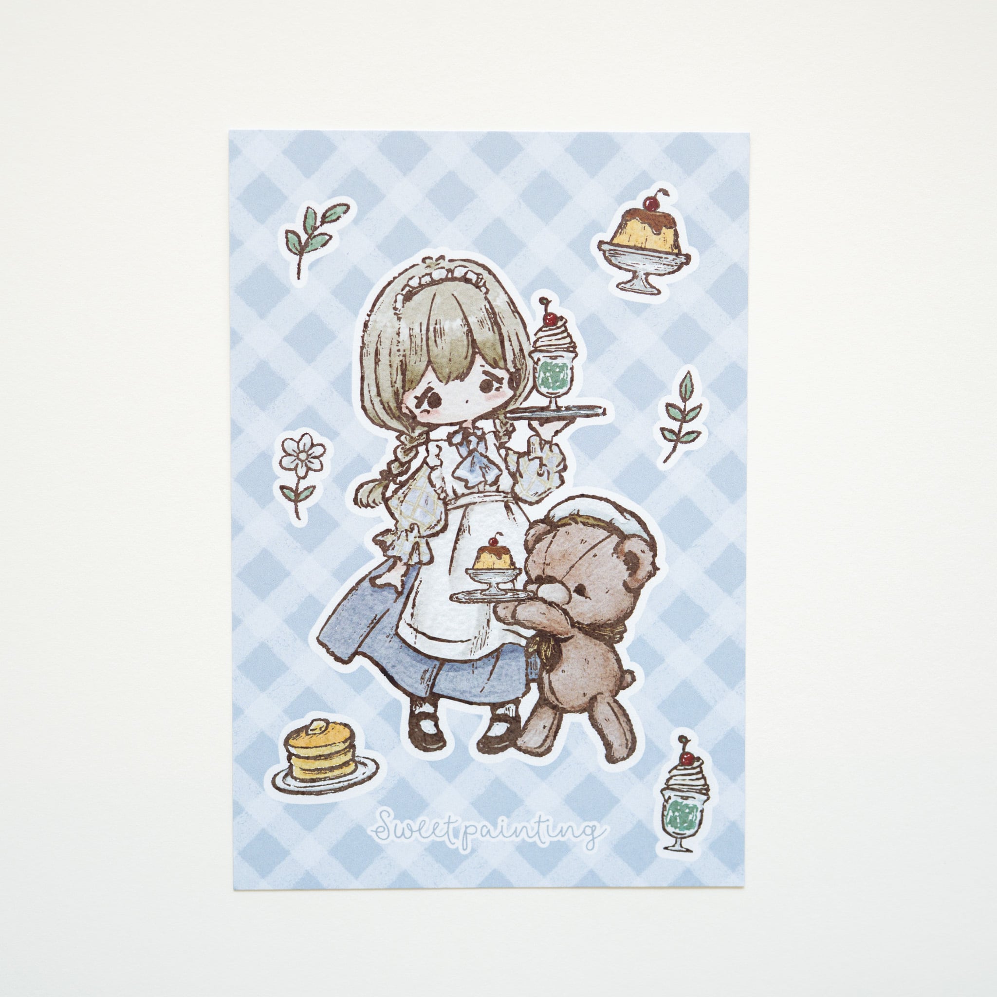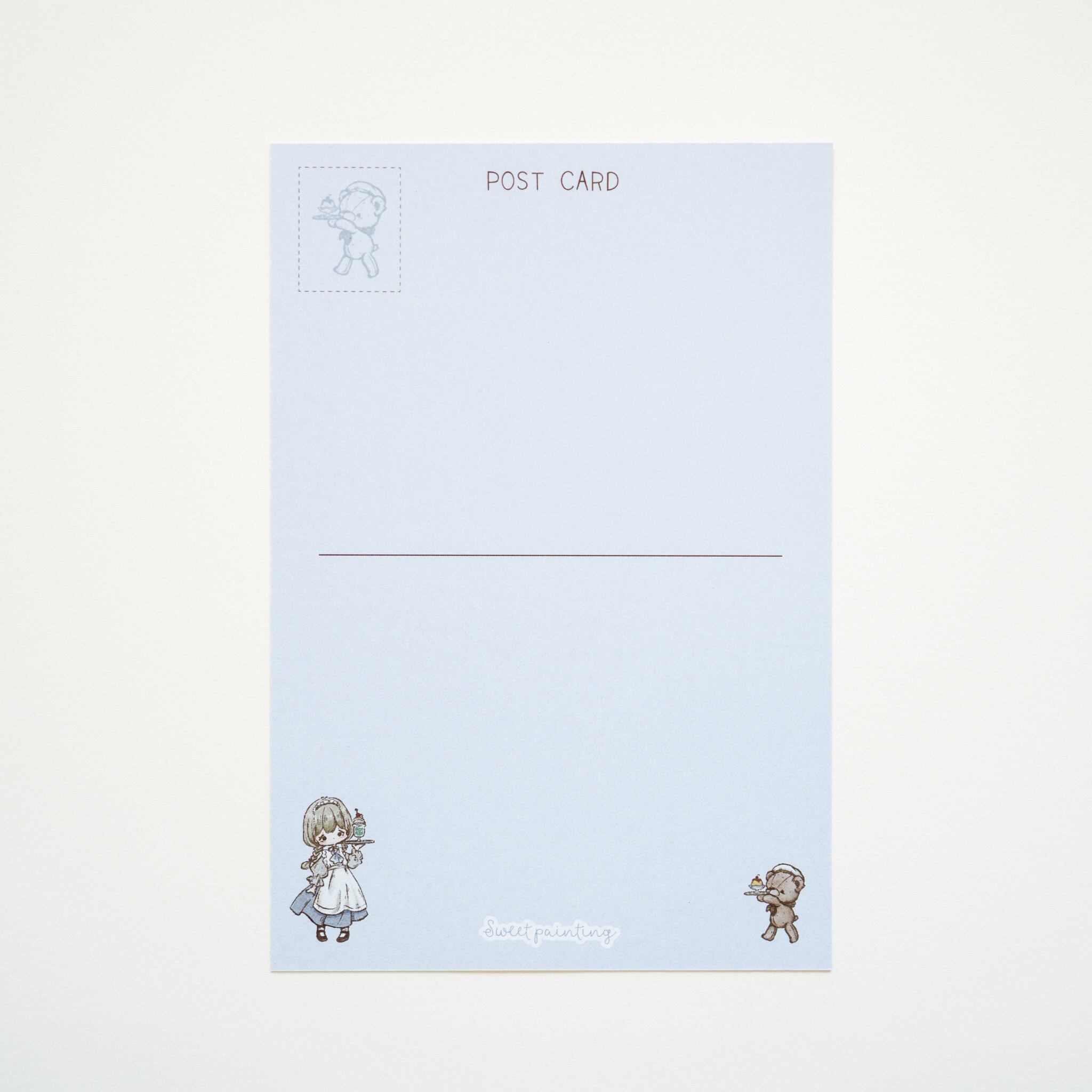 ポストカード - カフェではたらく女の子とテディベア 【Sweet painting】