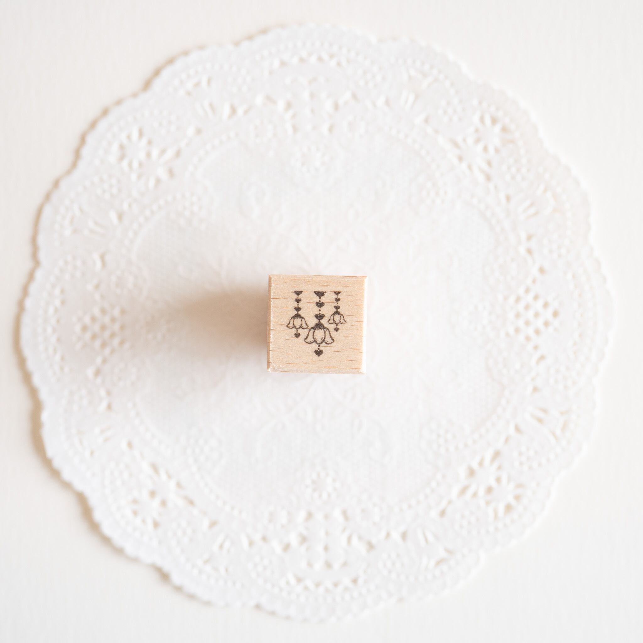小さなハートが揺れるシャンデリアのラバースタンプ。