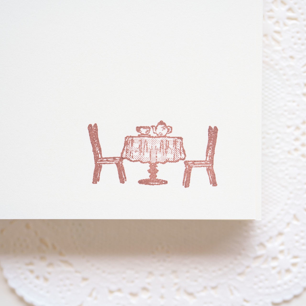 ティーセットが乗った丸テーブルと、左右のイスが揃った3点セットのスタンプです。