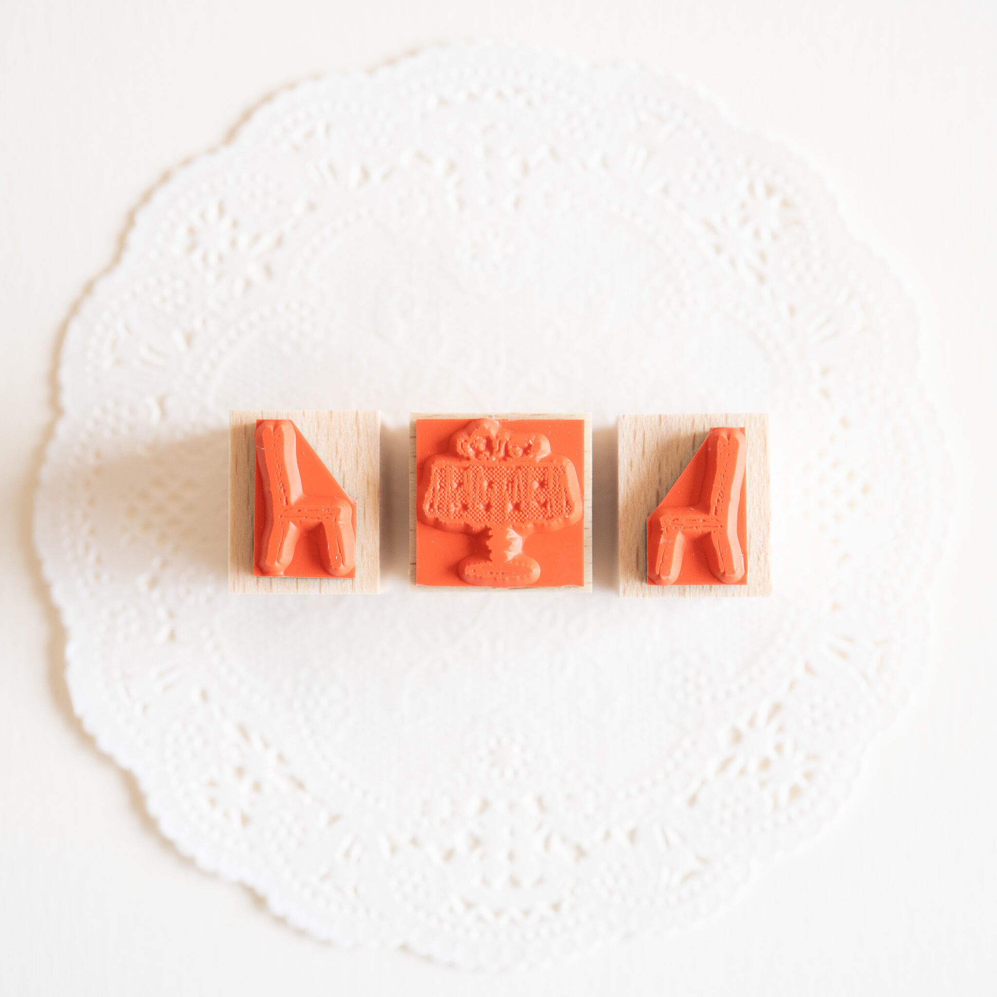 ラバースタンプ - テーブルと椅子 (3点セット)【ドールハウスシリーズ】【Sweet painting】
