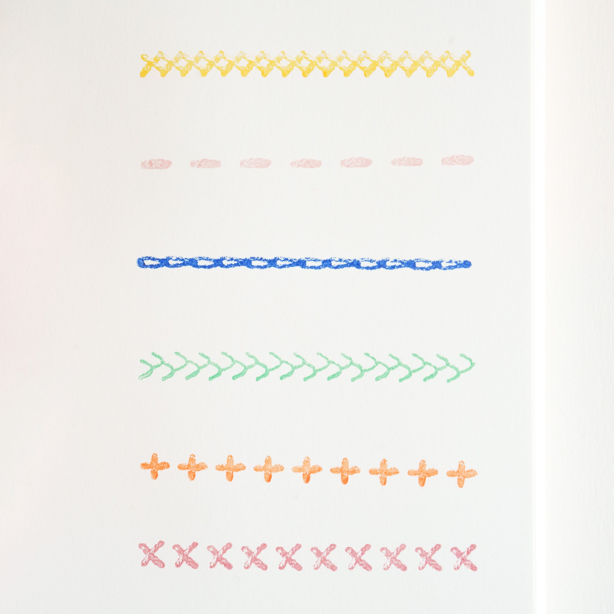 本物の刺繍のステッチを、やわらかな風合いのまま平面のスタンプデザインに落とし込みました。