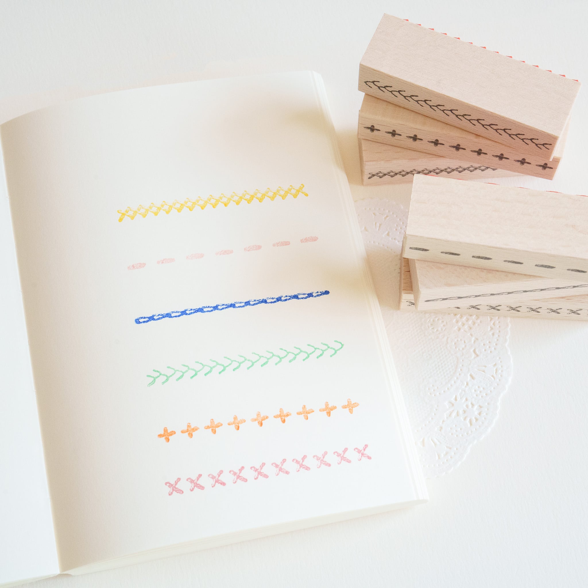 お好きな色のスタンプパッドと組み合わせれば、糸で縫ったような雰囲気を手軽に楽しめます。