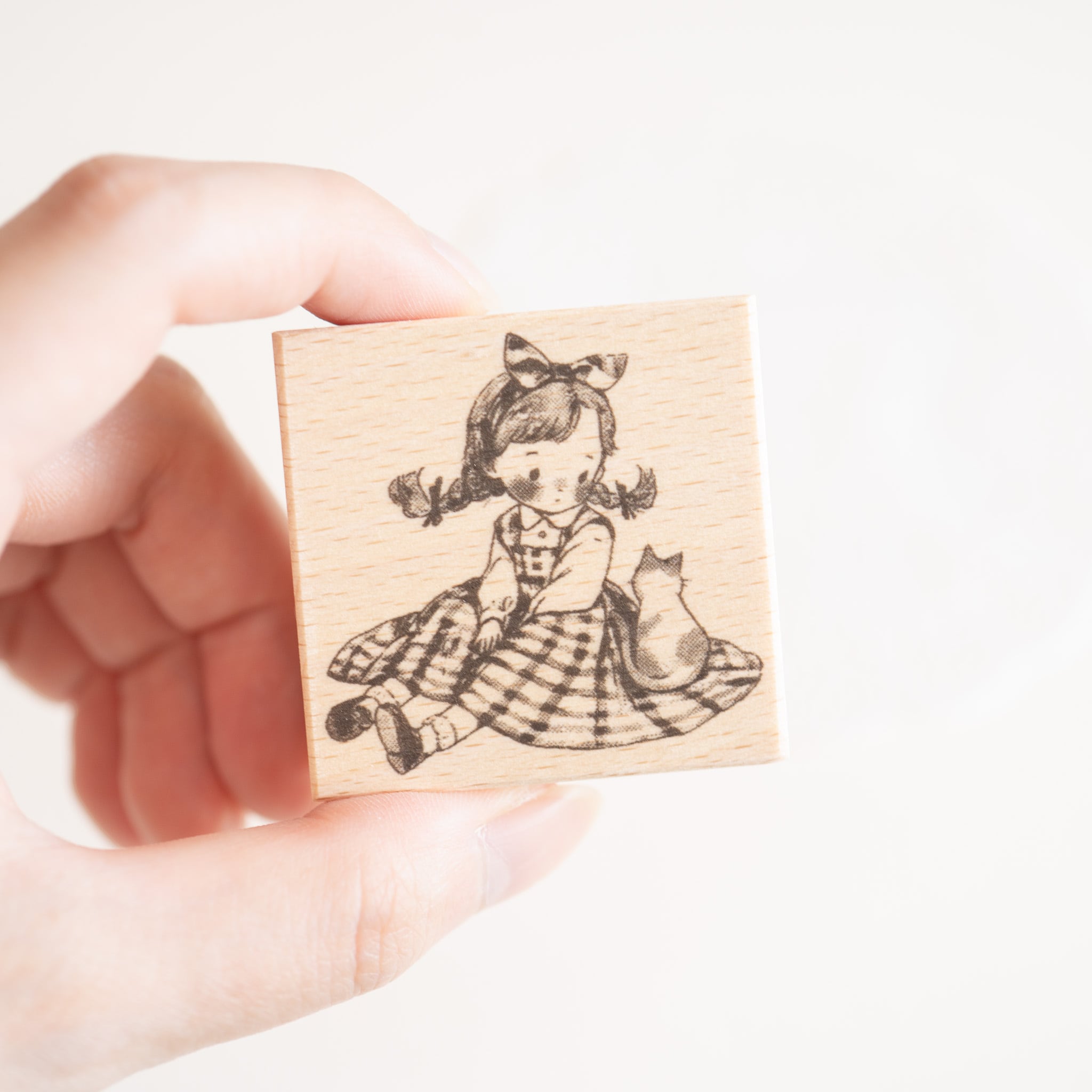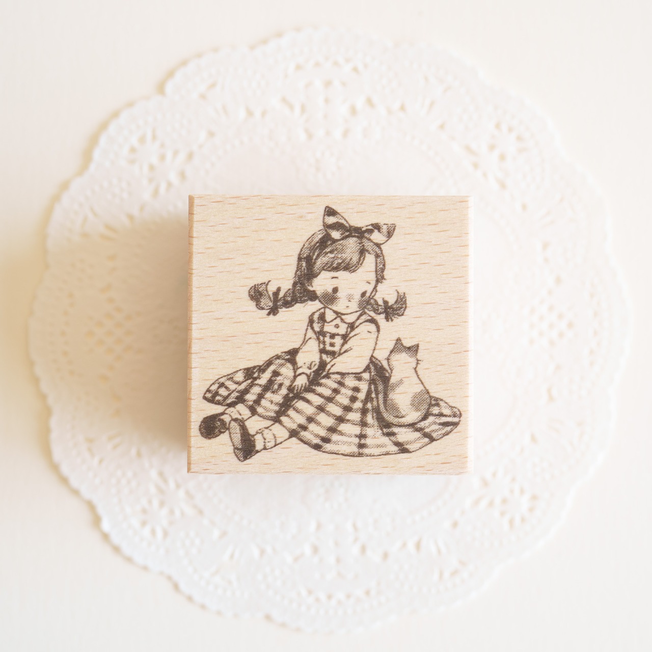 ラバースタンプ - 女の子と猫 No.1【Vintage girly】