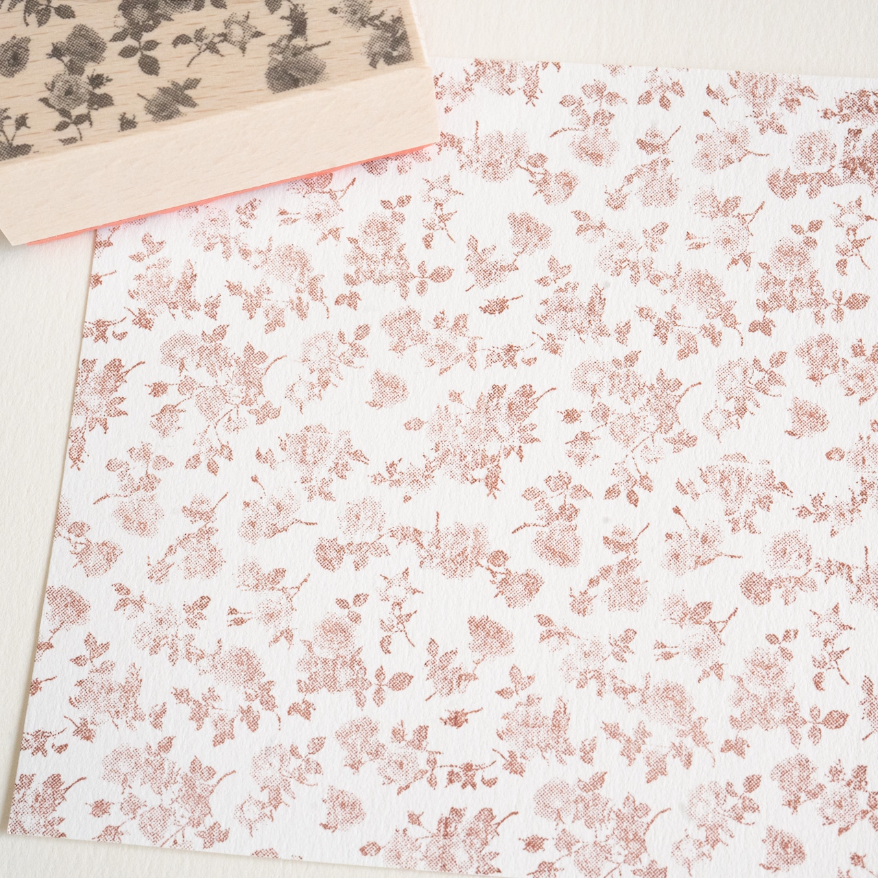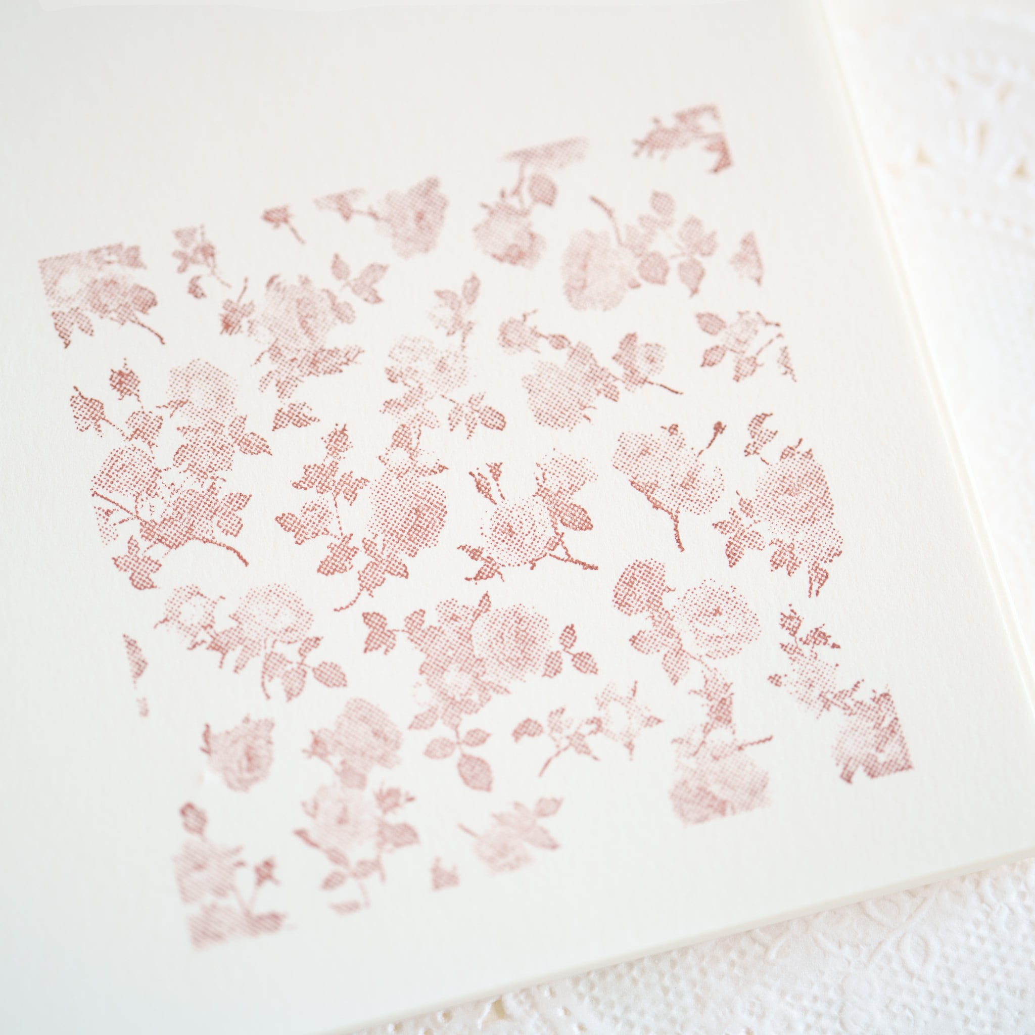 やさしい濃淡がふんわり出る、薔薇柄の装飾ラバースタンプです。