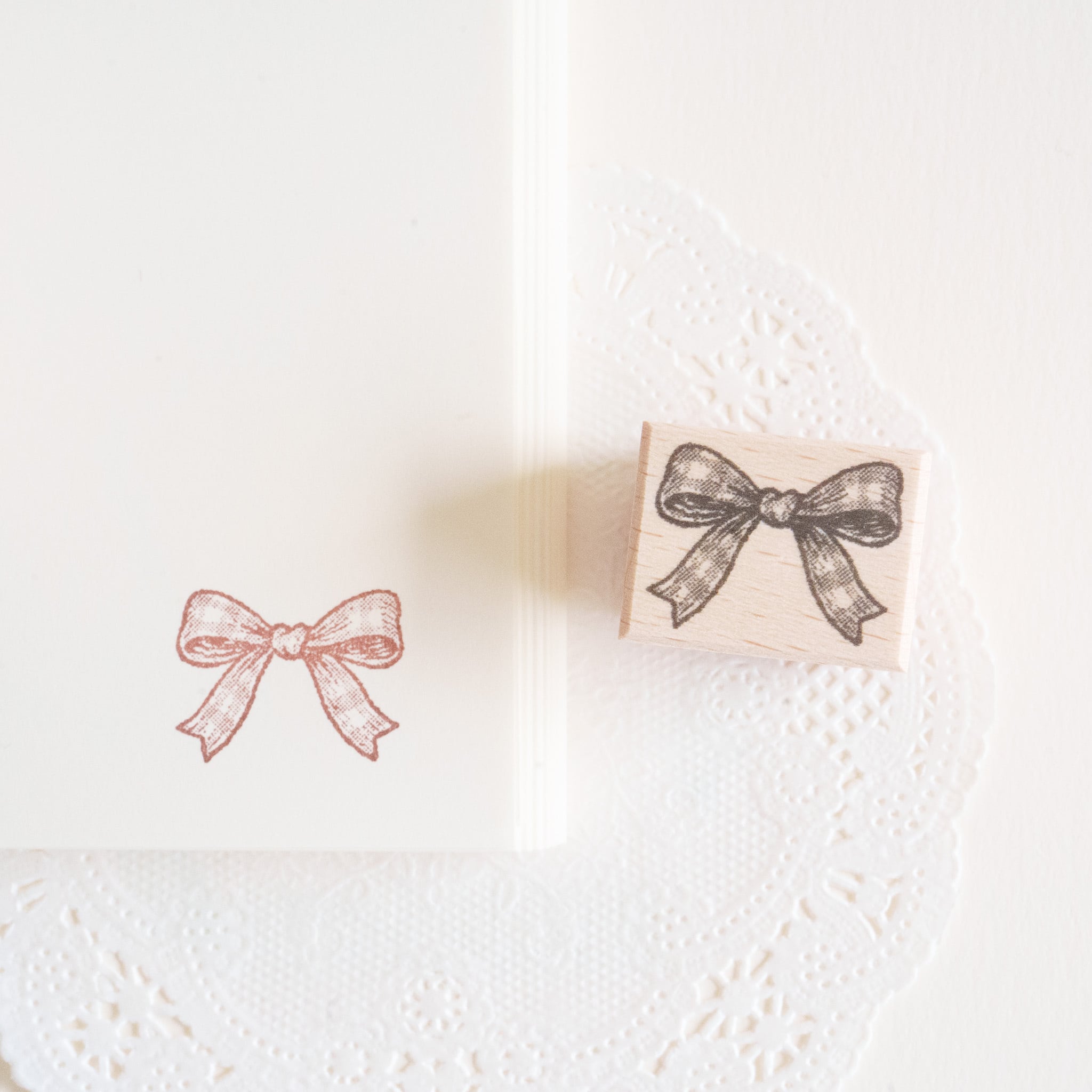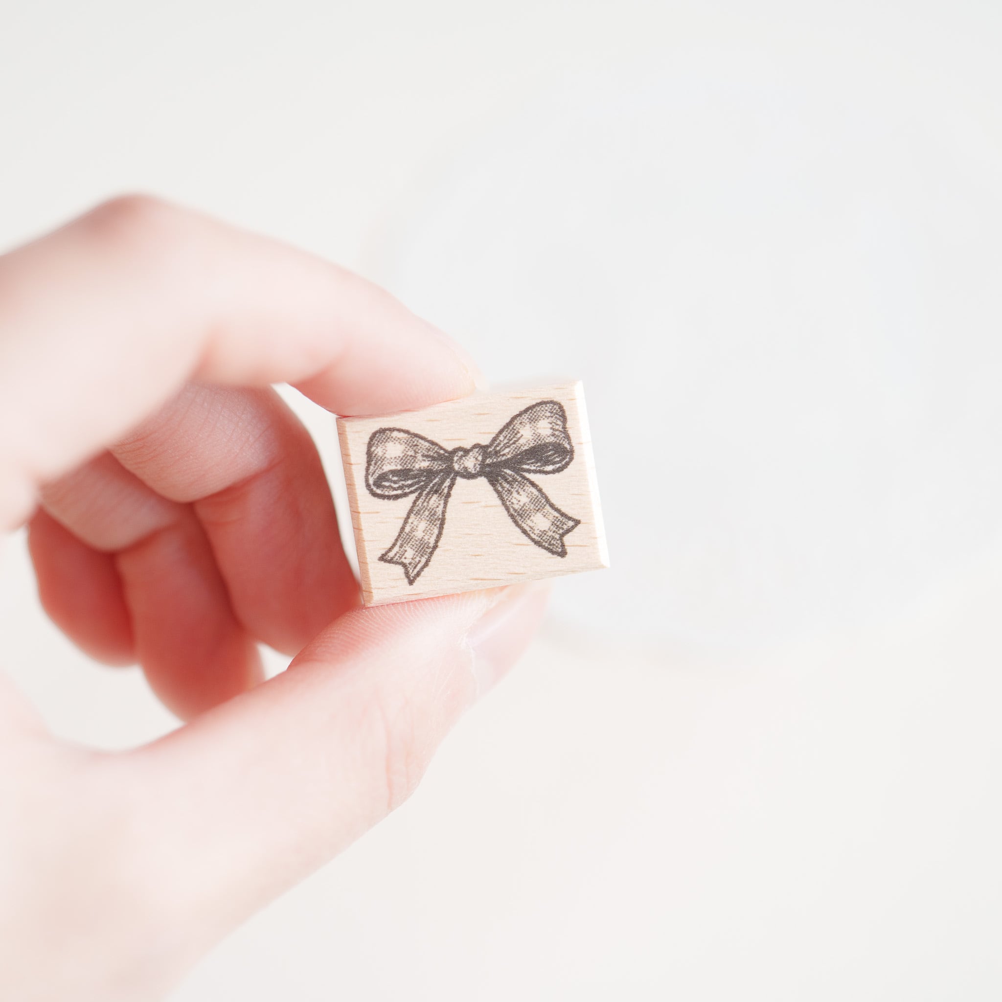 ラバースタンプ - チェック柄のリボン 【Sweet painting】
