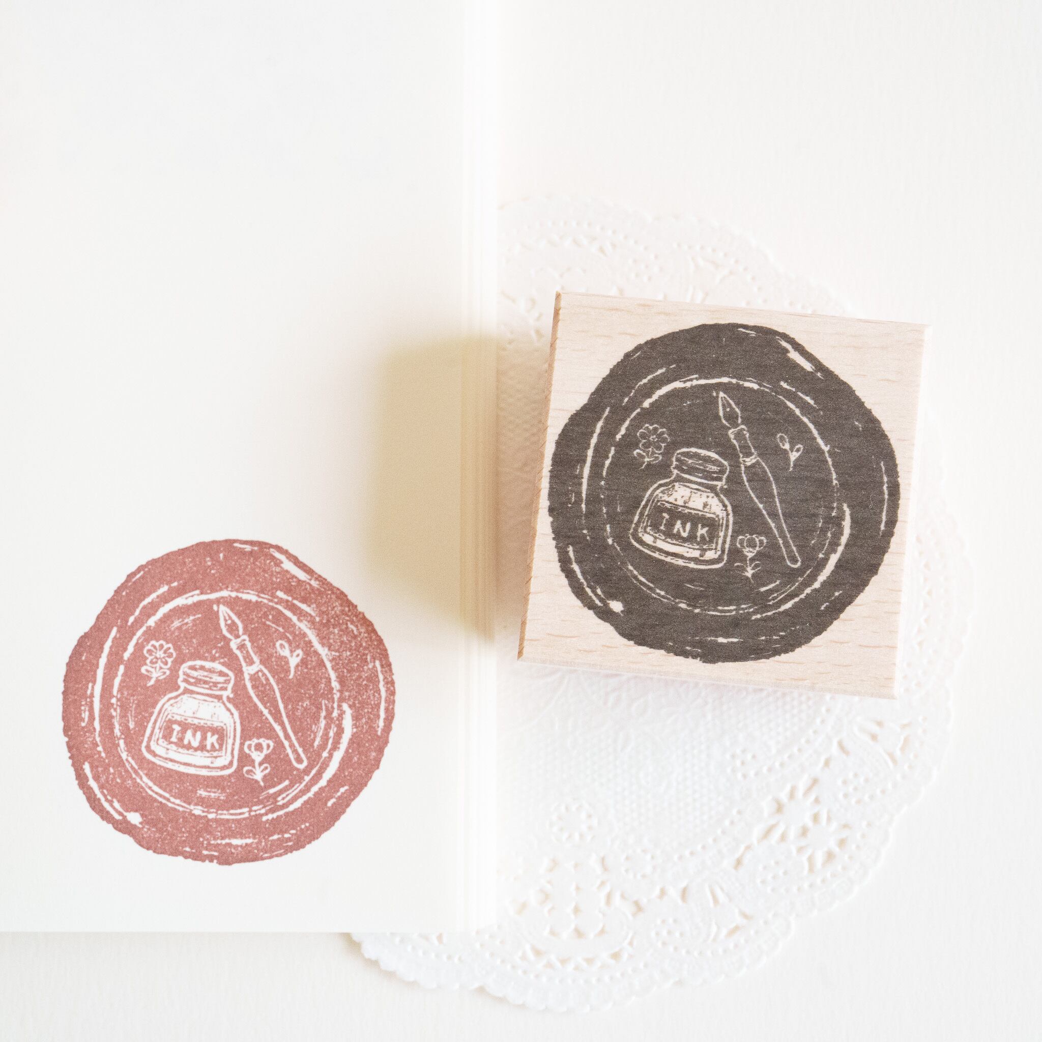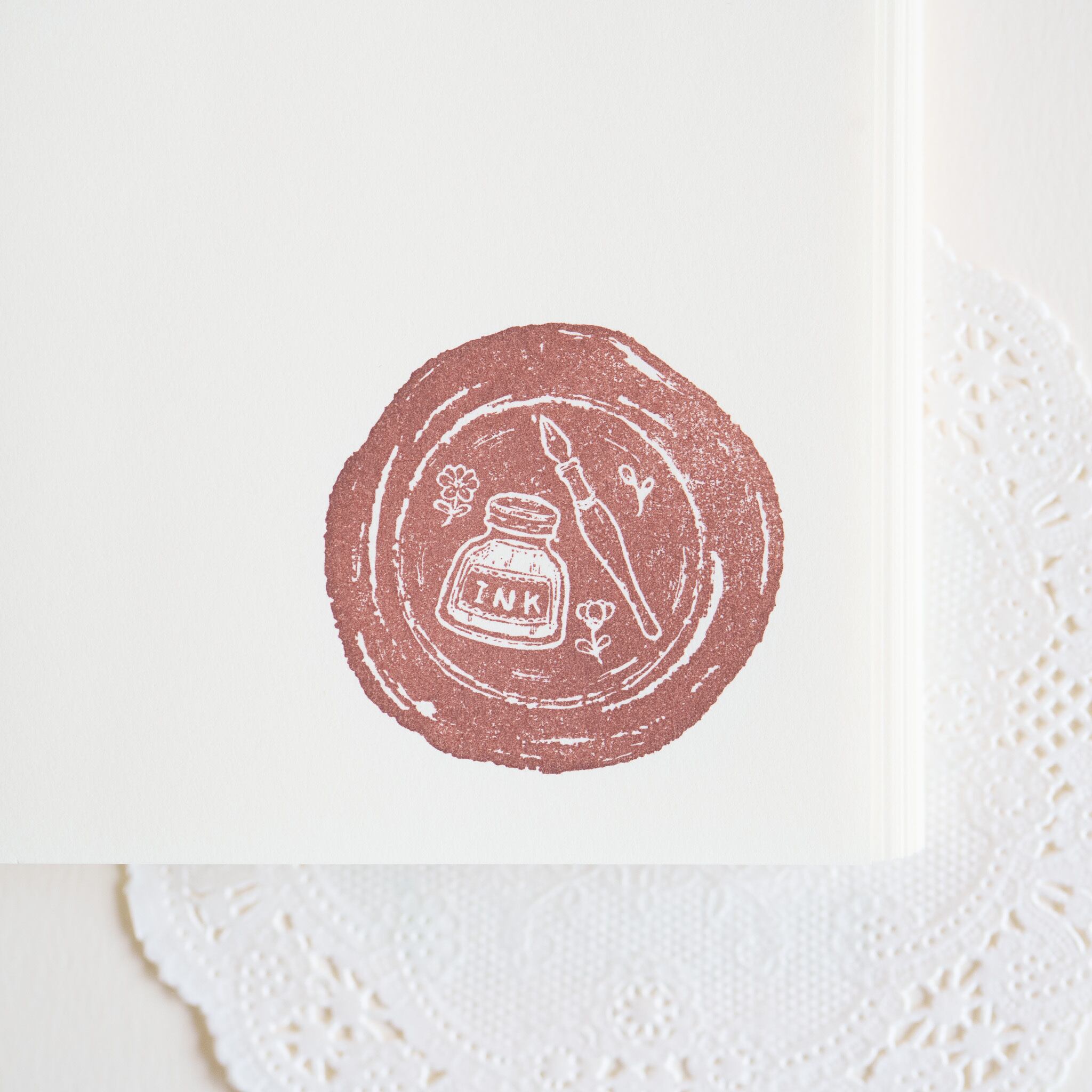 ペンとインク柄のシーリングスタンプをイメージしたラバースタンプです。