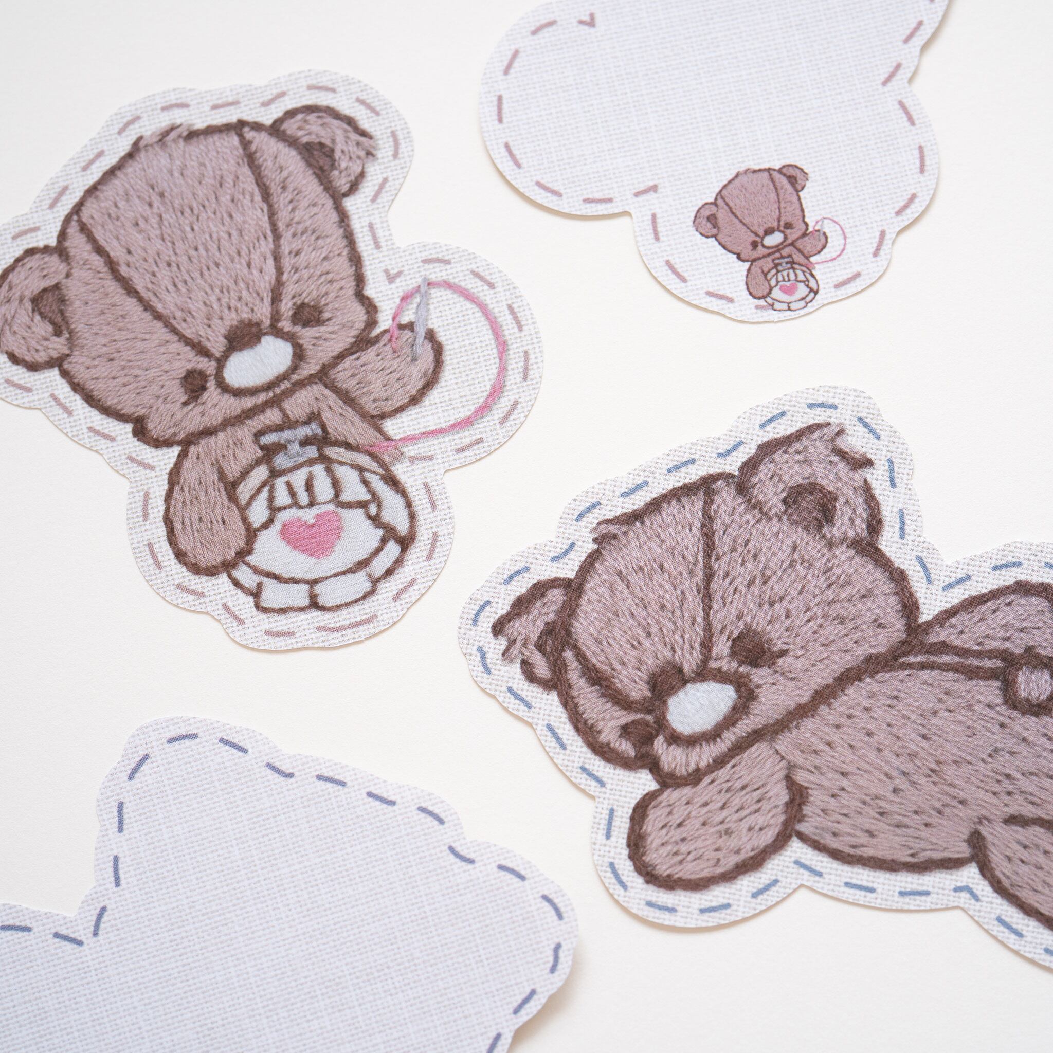 ダイカットメモ - ワッペン風メモ テディベア(くま) 刺繍をするテディベア / 刺繍イラストNo.14 【Sweet painting】