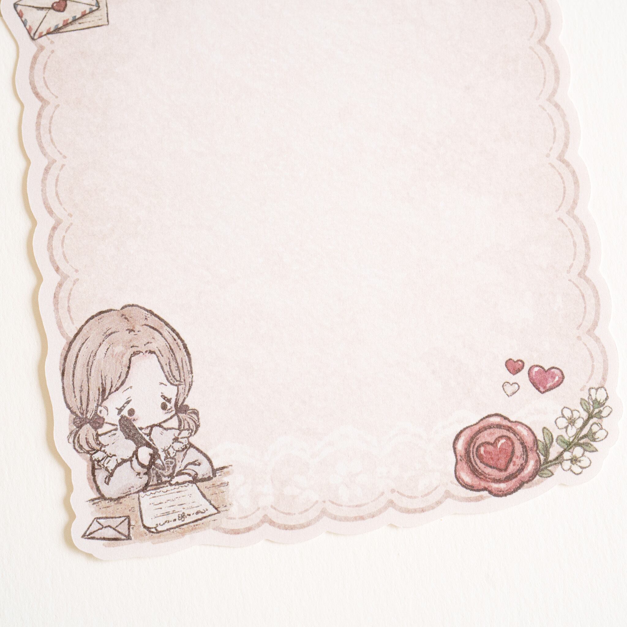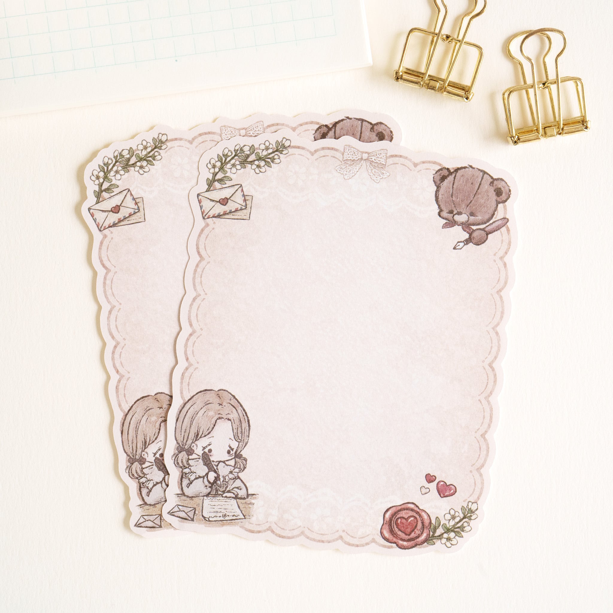 ダイカットメモ - 手紙を書く女の子とテディベア 【Sweet painting】