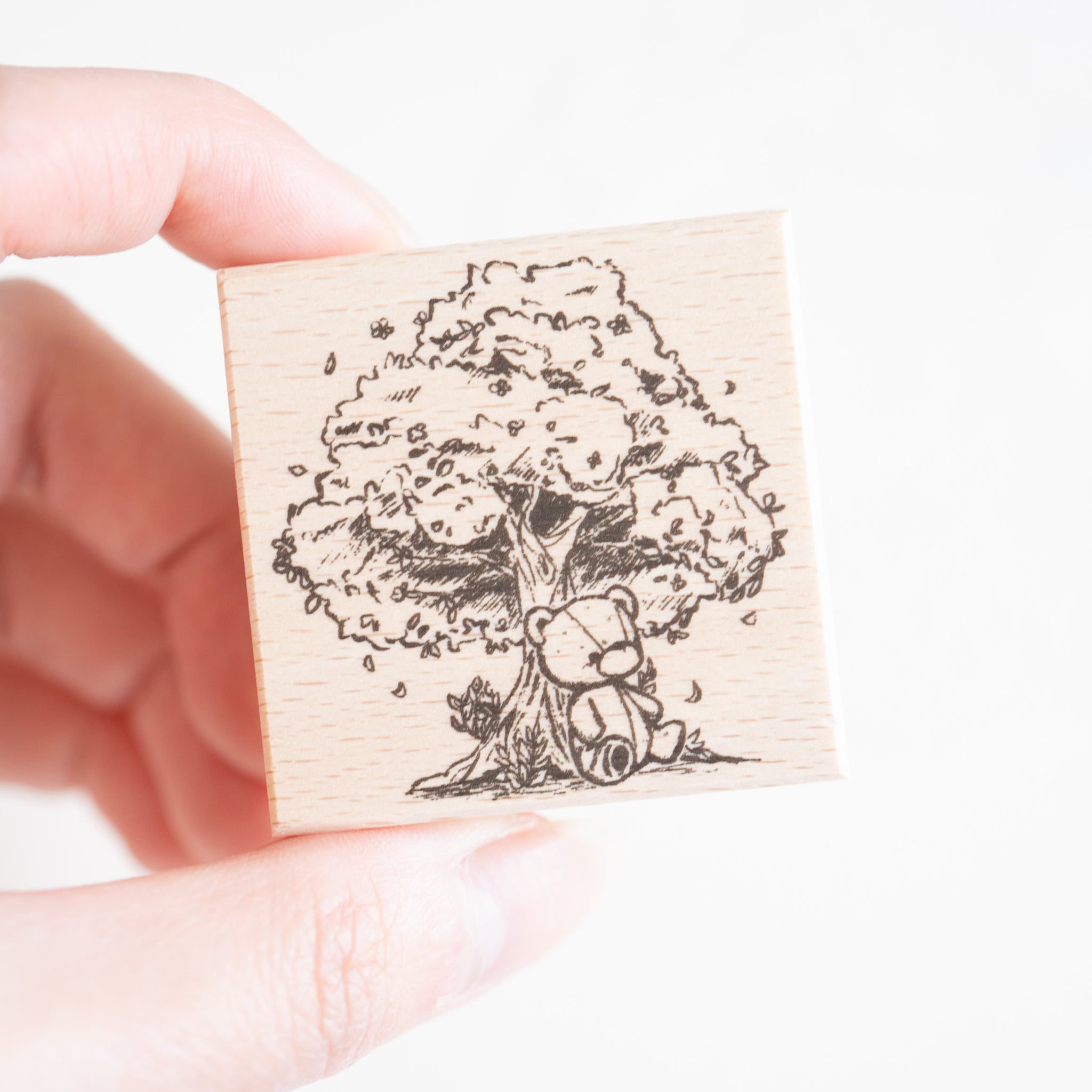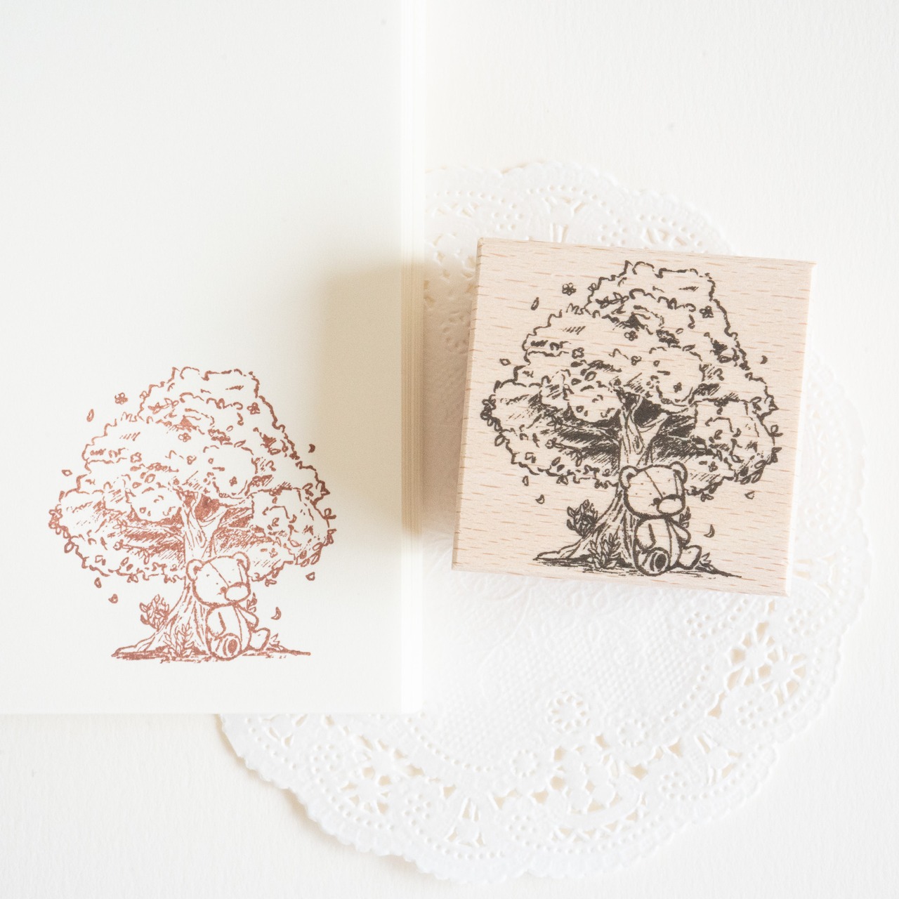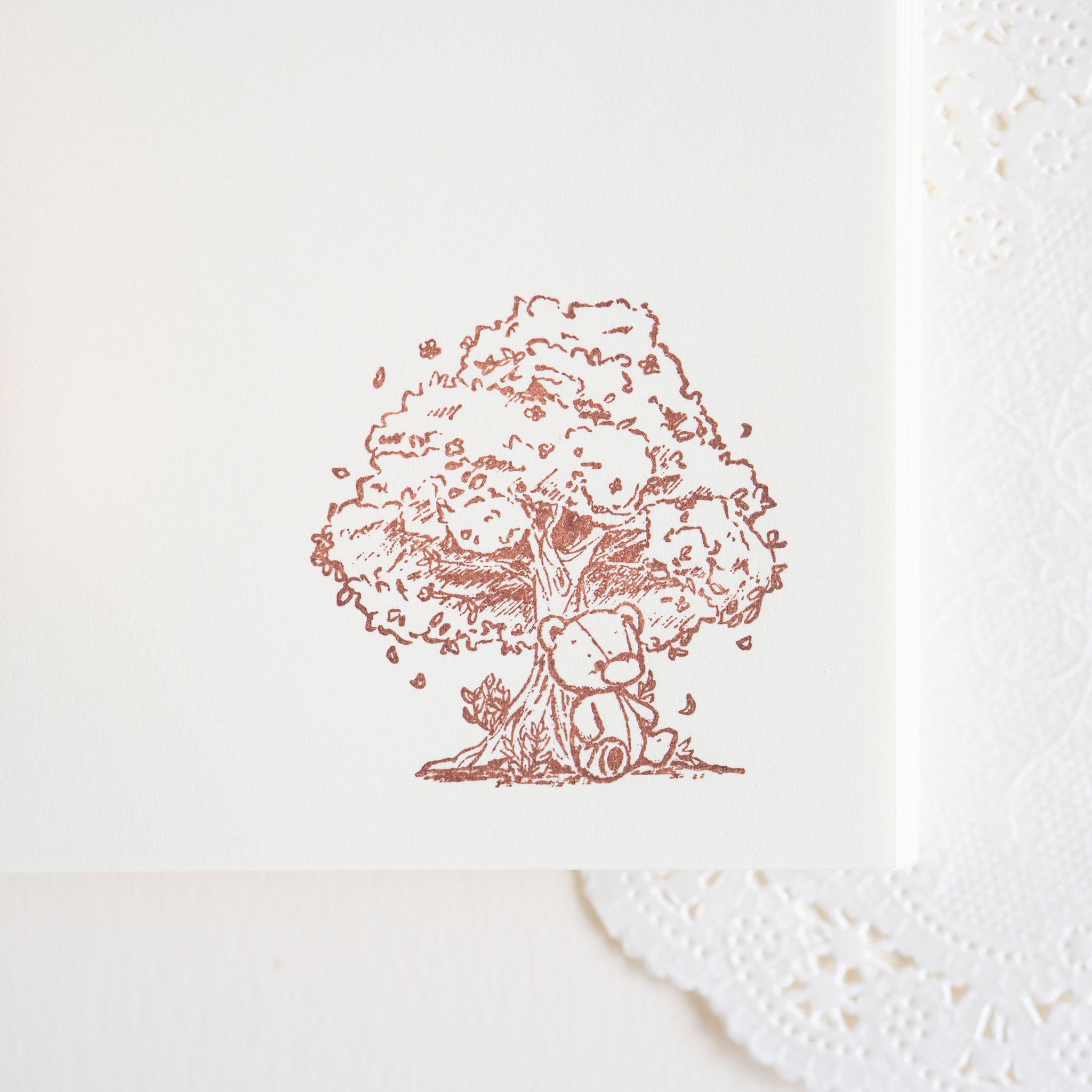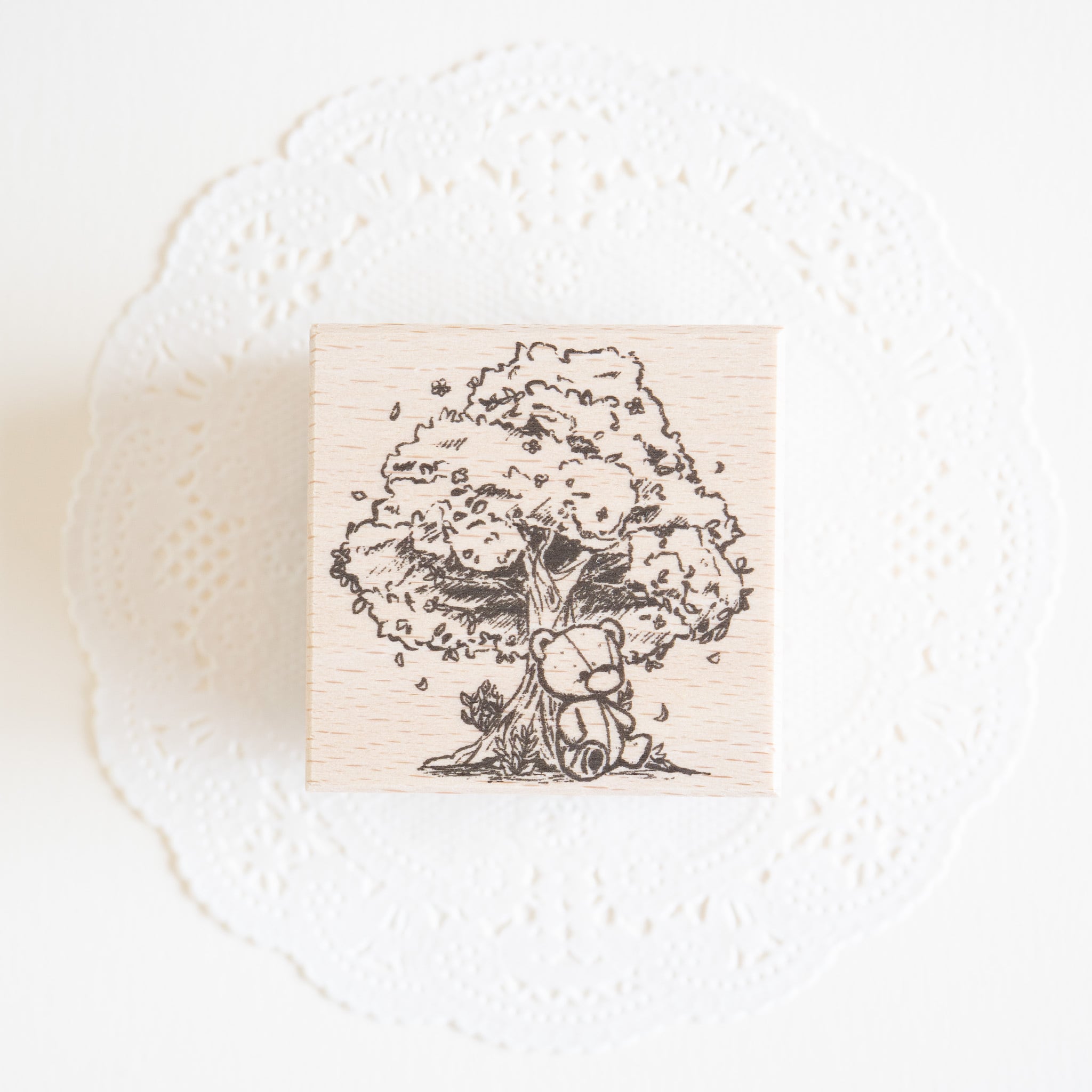木の下でのんびりと座るテディベアのラバースタンプです。