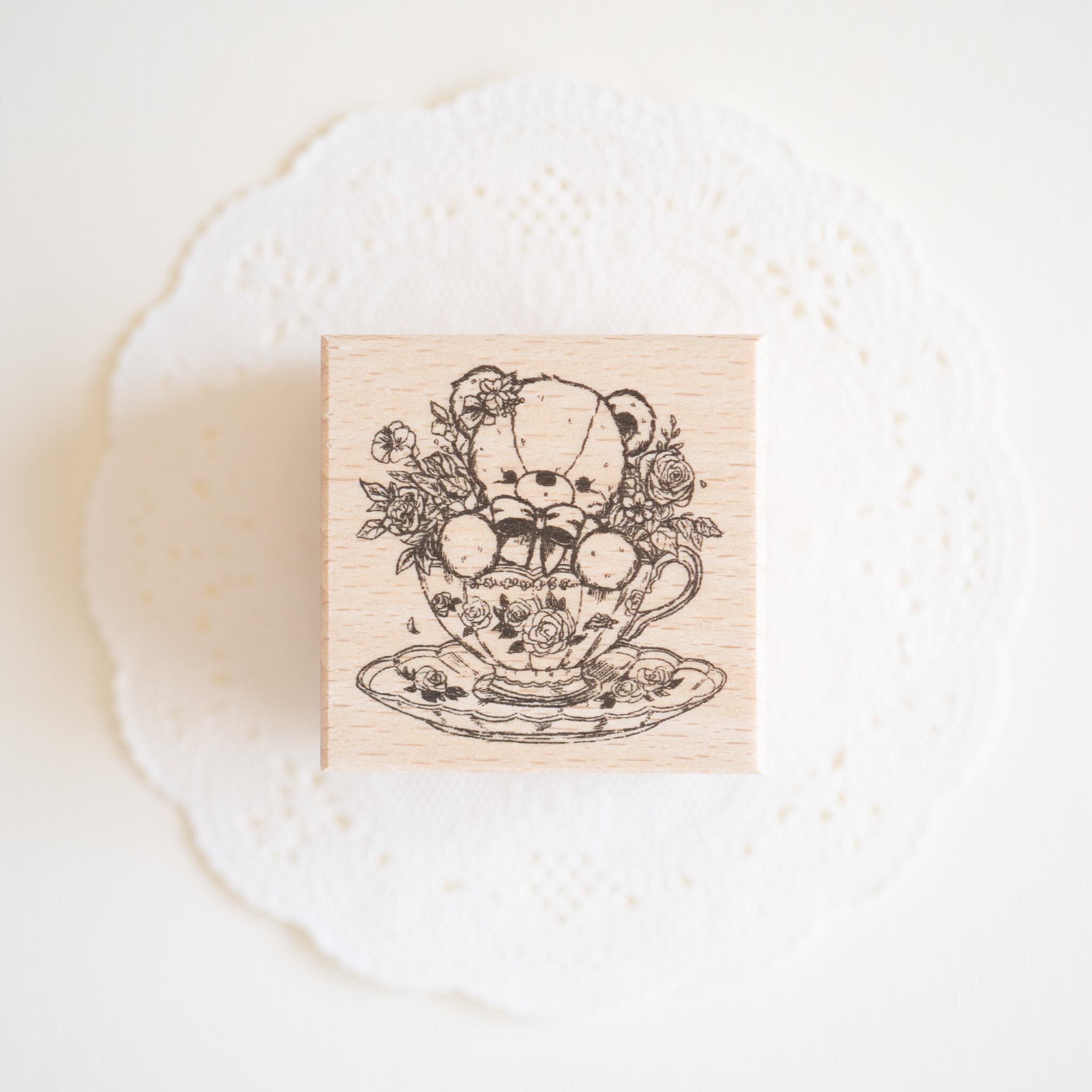 ラバースタンプ - ティーカップテディベア (くま) 【Sweet painting】