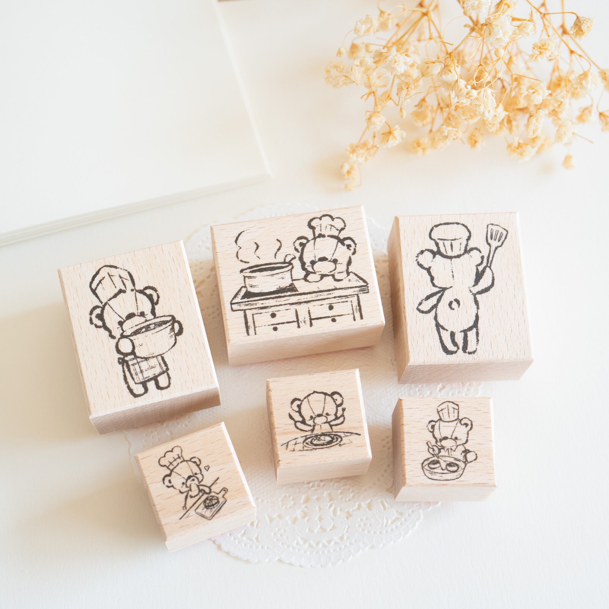 お料理を楽しむテディベアのラバースタンプ。