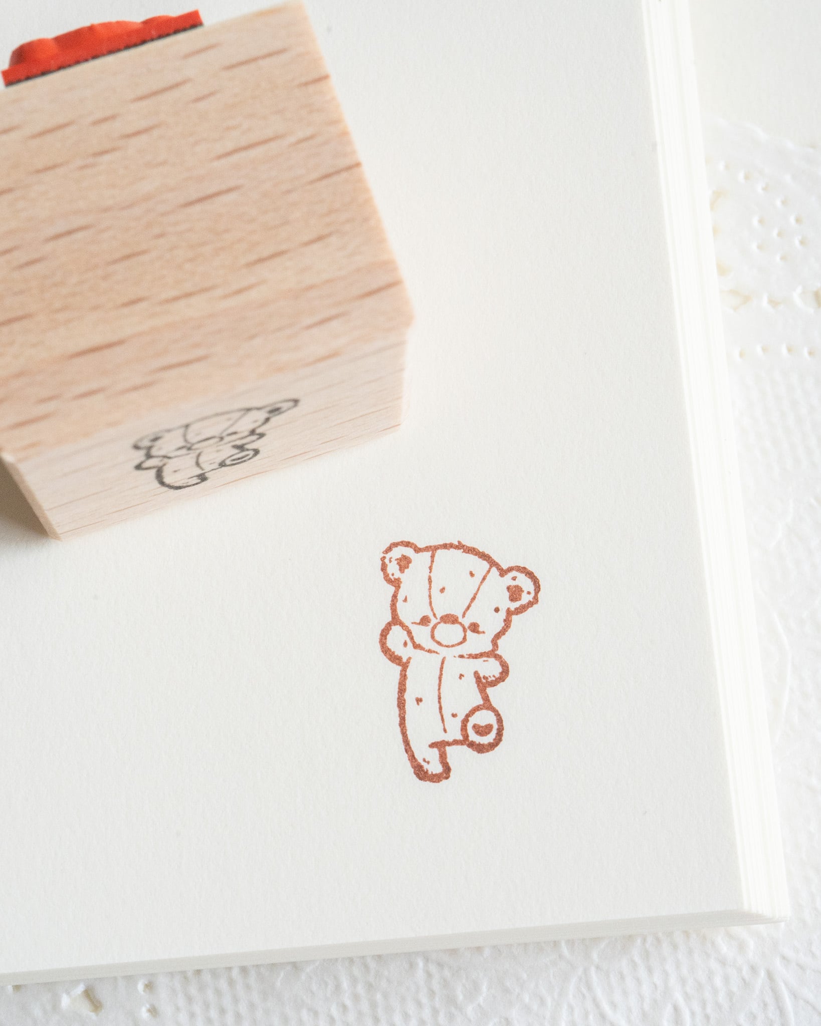 小さなサイズが愛らしいテディベアのラバースタンプ。